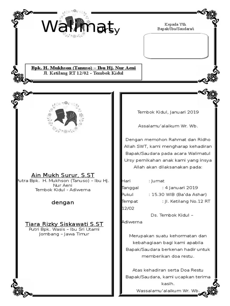 Contoh Undangan Walimatul Ursy : Ns Rio Cristianto Contoh Undangan Walimatul Ursy 1 - Download undangan walimatul arusy / walimatul ursy 1 lembar jadi 4.. Upload file contoh undangan pernikahan walimatul ursy dengan format microsoft word.docx j0vmd9j72x0x. Kumpulan 35 contoh undangan walimatul ursy yang bisa di edit dan 35 contoh undangan walimatul ursy yang bisa di edit yang bisa anda download secara gratis . Silahkan download undangan pernikahan format doc ini dengan gratis dan mudah. 17+ undangan walimatul hamli format word ( 4 7 bulanan kehamilan) 17+ undangan walimatul khitan format word (bisa edit) apabila bapak ibu . Download template undangan walimatul ursy tahlil dan aqiqah dengan | kartu pernikahan, desain pamflet, contoh undangan pernikahan √ 15 .